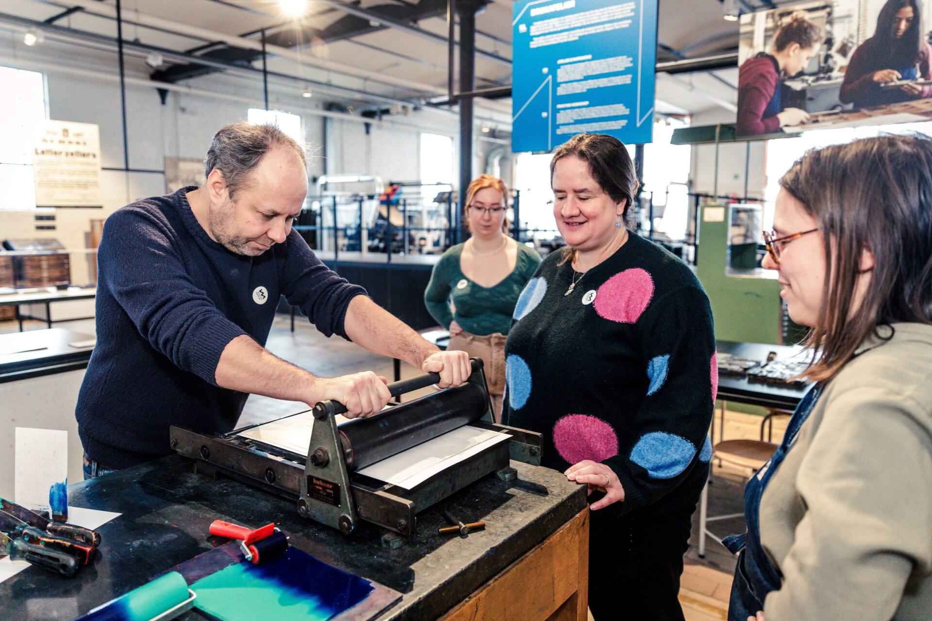 Niets zo goed voor de teamspirit dan samen klungelen om letters juist gezet te krijgen. Dat ondervonden we tijdens de workshop posters maken in het Industriemuseum. Het was immers hoog tijd dat we bibliothecair erfgoed ook in de vingers kregen als maker, en niet alleen als ondersteuner.
